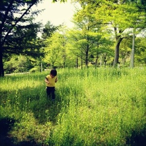 写真は、道無き道をグングン突き進み、草原?!を探検する、