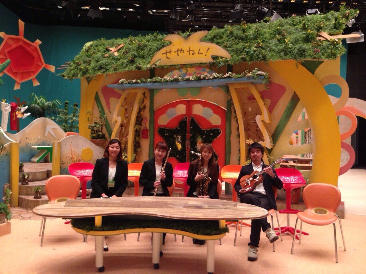 左から、ピアノの小野さん、フルートの齋藤さん、私、ウクレレの松本氏です。