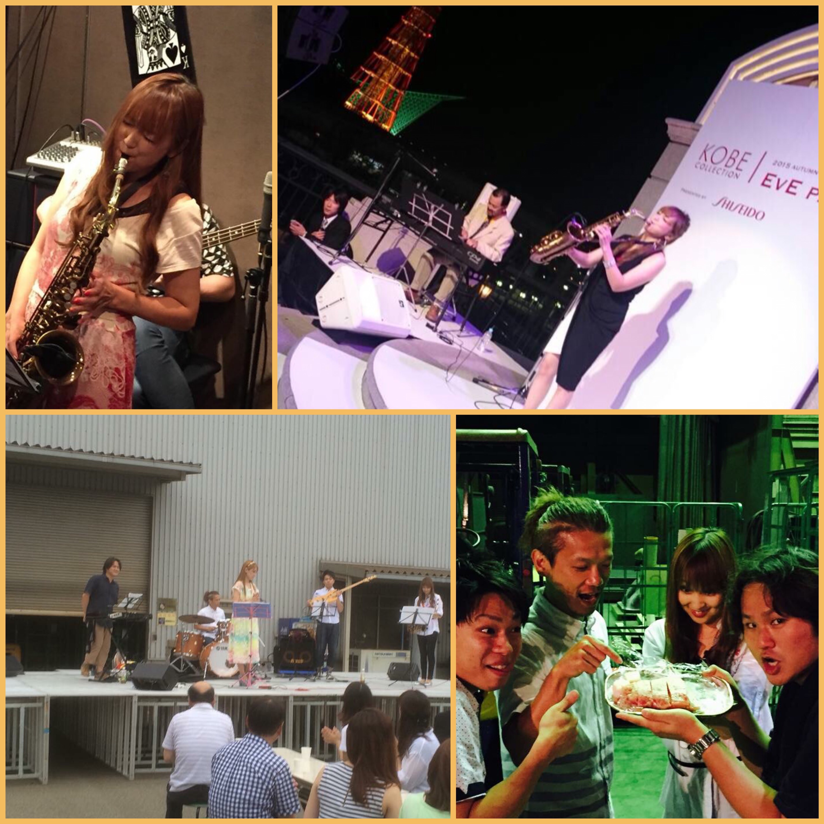 右上は、神戸コレクションのパーティーでの演奏。テレビなどでよく見るモデルさん達との共演もありました(^-^)