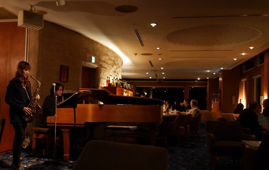 ↑写真は先日火曜日、ウェスティン都ホテル・Bar Moonlightでの演奏シーン♪上品な空間には、もう実にいろ〜んな国からのお客様。