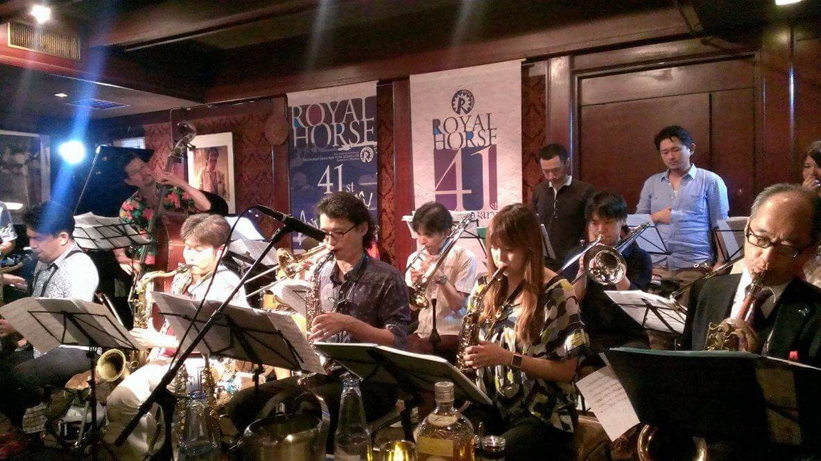 頂いた、この写真で好きなのは、サックスメンバー全員が写ってるというのもありますが、私の真ん前の、一番前のお席での、たくさんのお酒のボトルが、綺麗でかっこよくて。
