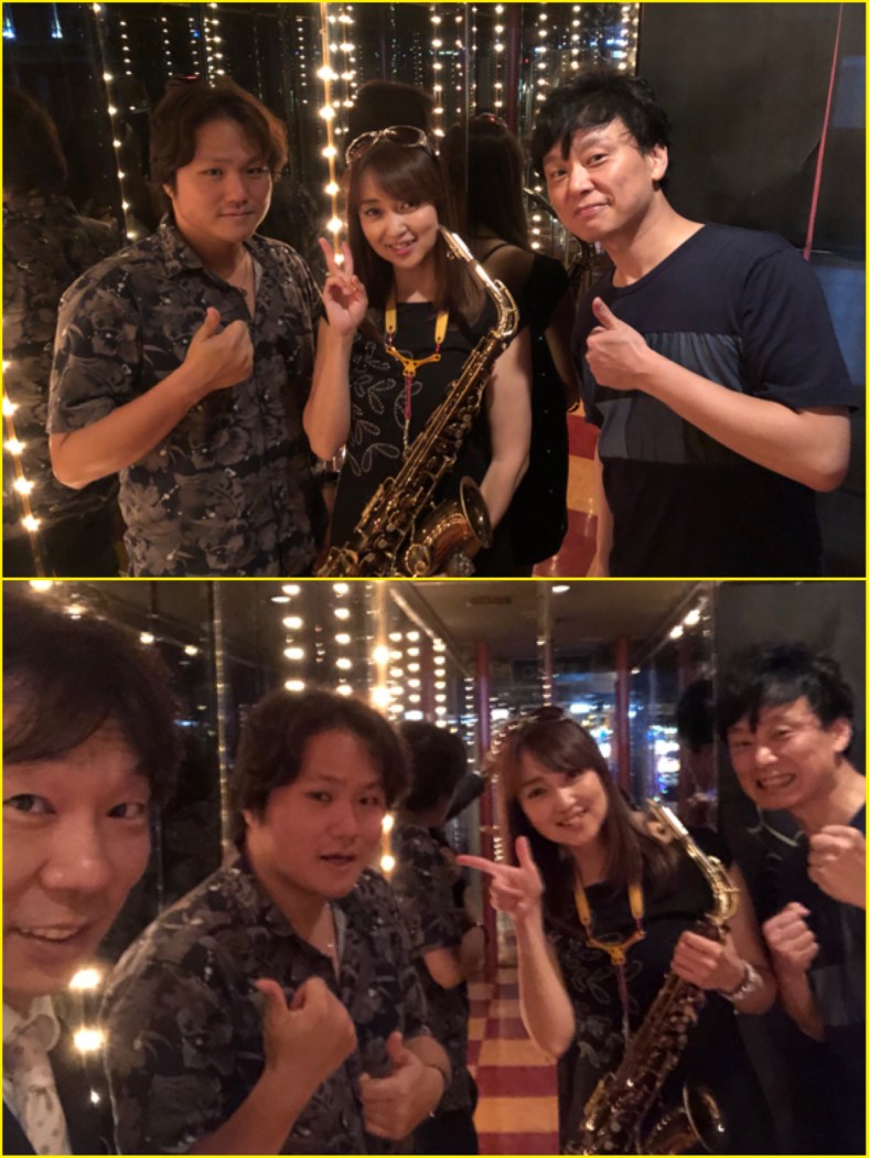 下段は、メンバープラス、ここ、十三はニューサンローランの社長であり私達ミュージシャンのブッキングもしてくださってる富岡氏も一緒に(^-^)♪