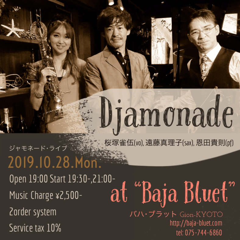 少し先ですが、2019.10.28(月)、京都は祇園の“Baja Bluet”…バハブラット…で、皆様のお越しをお待ちしております🎷
