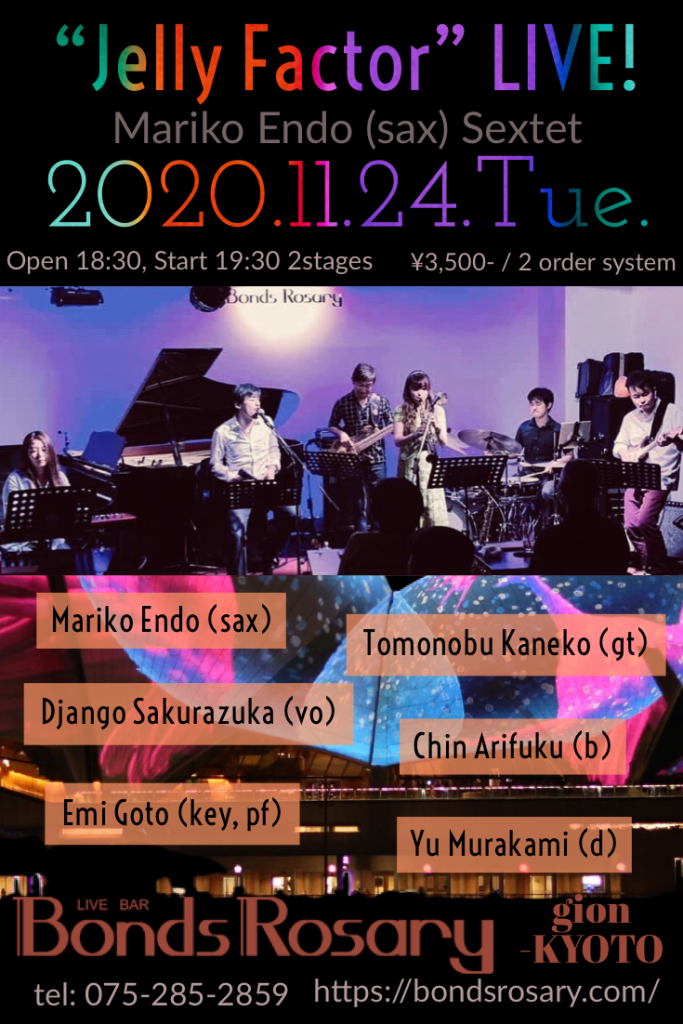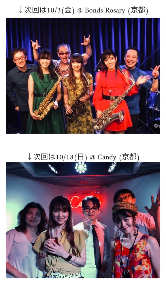 次回は…♪ 2020/07/062020/07/07Mariko 先日のJelly Factorのライブ、お越し頂きました皆様、本当にありがとうございました🎶次回のフライヤーを早速作りました。2020/11/24(火)です♪そして、この週末に行われたライブの次回も…Diehard with Saxophone Trinityのライブは、10/3(金)、コニー(vo)さんのクインテットのライブは、10/18(日)に😊 そして明日は! たまたま京都ばかりのお知らせになってますね😊大阪でも兵庫でもライブしてますので、これからも、いろんな場所で皆様にお会いできますように✨✨✨私の、この夏〜秋のライブスケジュールです🎷https://marikosax.com/live-and-gig-information/どうぞよろしくお願いいたします!! 共有: クリックして X で共有 (新しいウィンドウで開きます) X Facebook で共有するにはクリックしてください (新しいウィンドウで開きます) Facebook いいね 読み込み中… 関連