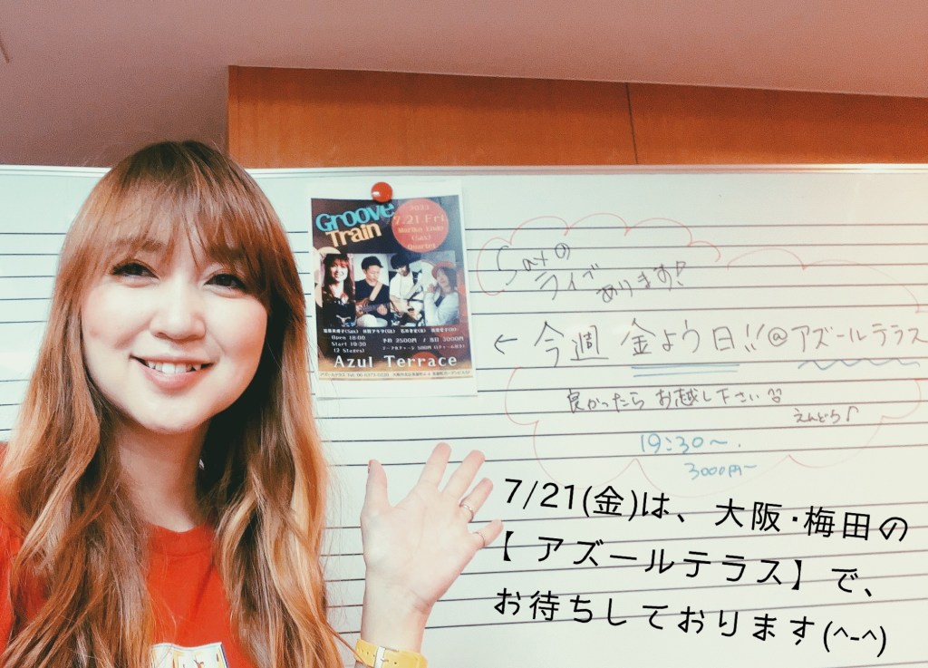 7/21(金)は大阪のAzul Terrace♪ 2023/07/19Mariko 夏本番だなーもうリハーサルじゃなくて、本番…今年の夏も、もちろん一回きり!楽しんでいこー7/21(金)は、大阪・梅田のアズールテラスで、とてもかっこいい曲ばかりを集めたFusionライブをします♪皆様にお越し頂けたら嬉しいです!!どうぞよろしくお願いいたします☆https://azul-umeda.com 共有: クリックして X で共有 (新しいウィンドウで開きます) X Facebook で共有するにはクリックしてください (新しいウィンドウで開きます) Facebook いいね 読み込み中… 関連